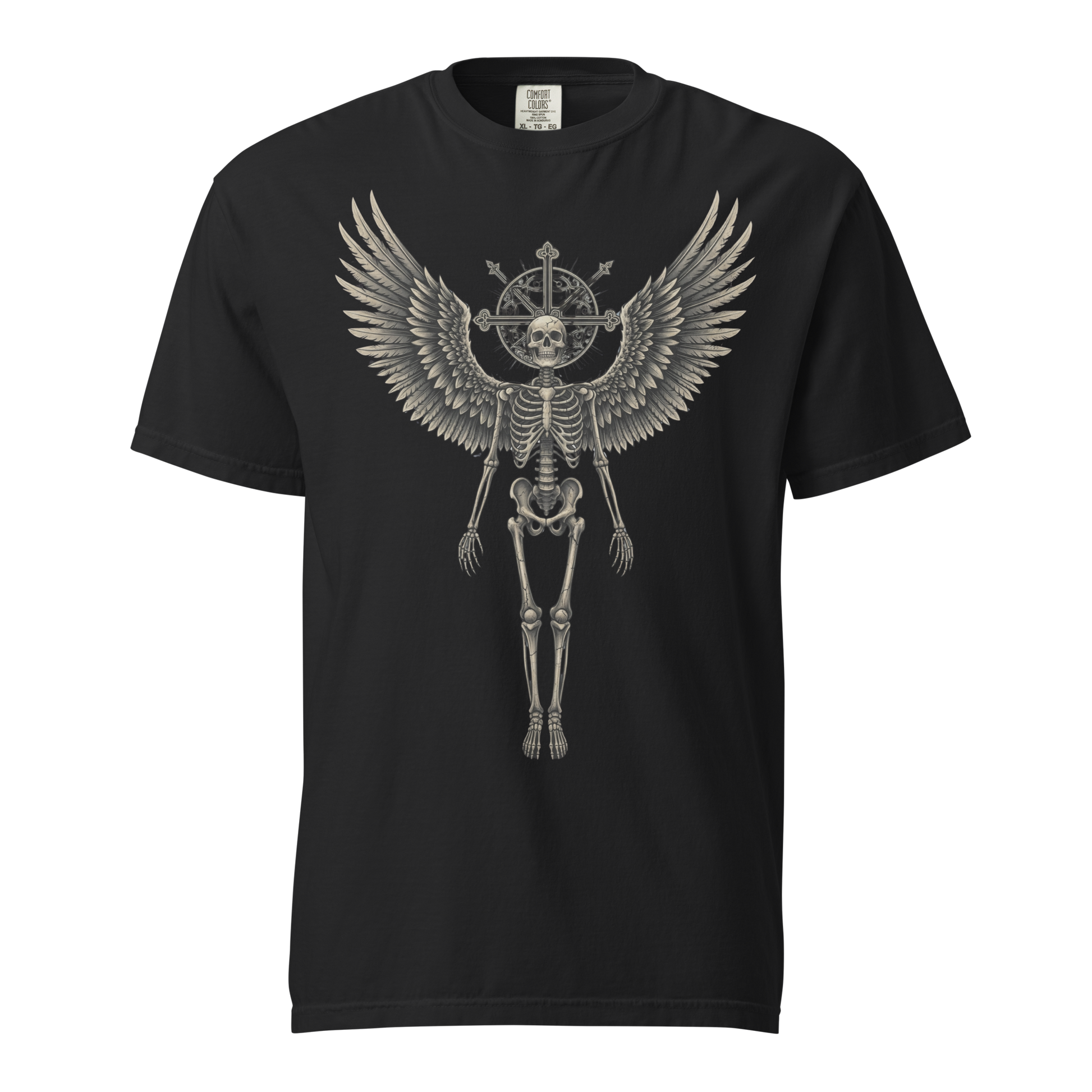 This heavyweight tee doesn’t just make a statement, it holds weight. Featuring a winged skeleton and glowing halo, the design represents power, pain, and transformation with unapologetic edge.